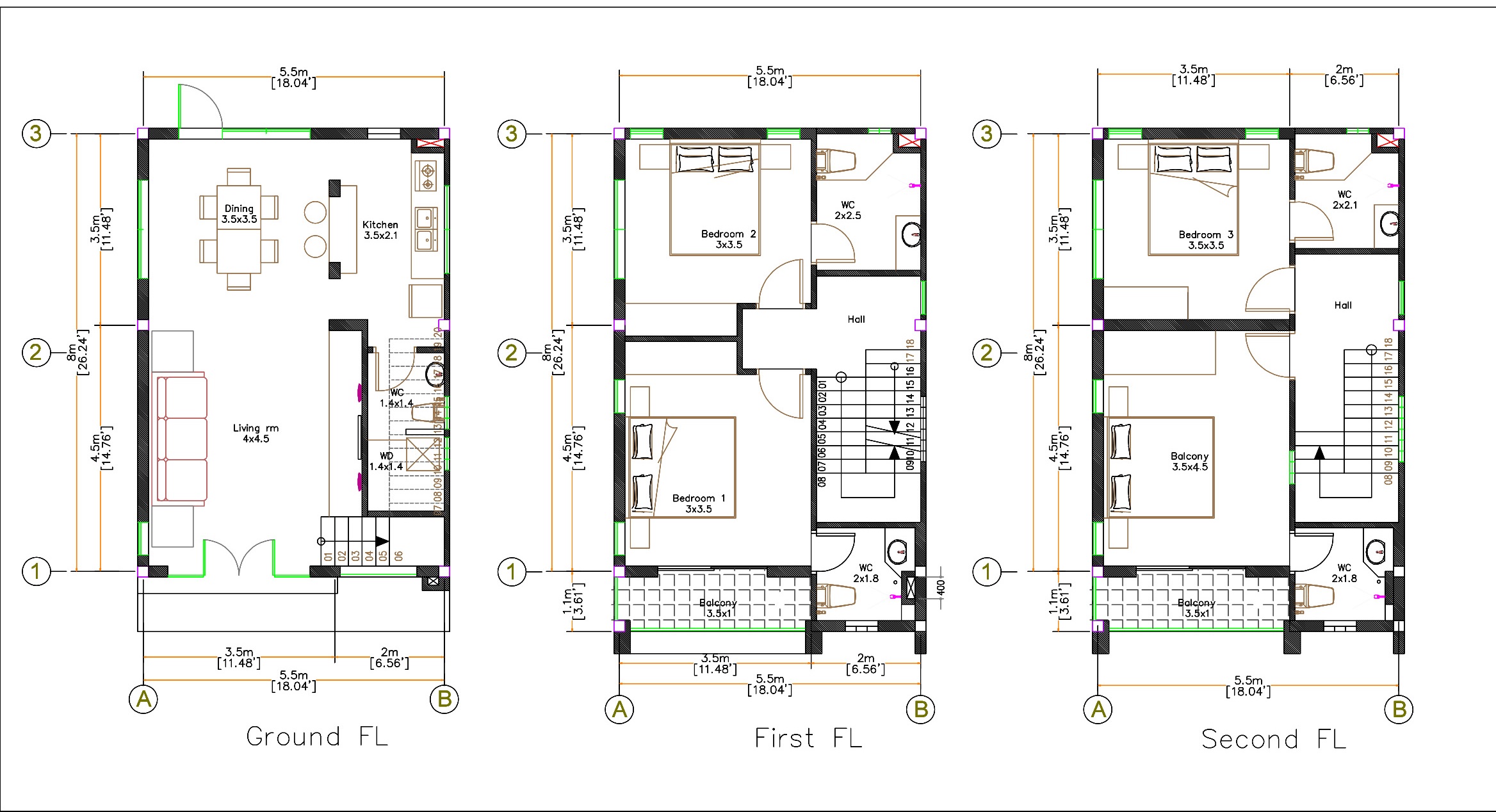 18×26 Small Home Plan 4 Beds 3 Story Levels 5.5×8 Meter PDF Full Plans. This villa is modeling with 3 stories level. It’s has 3 bedrooms. Est. Price around 32-38k usd construction only, furniture not include.