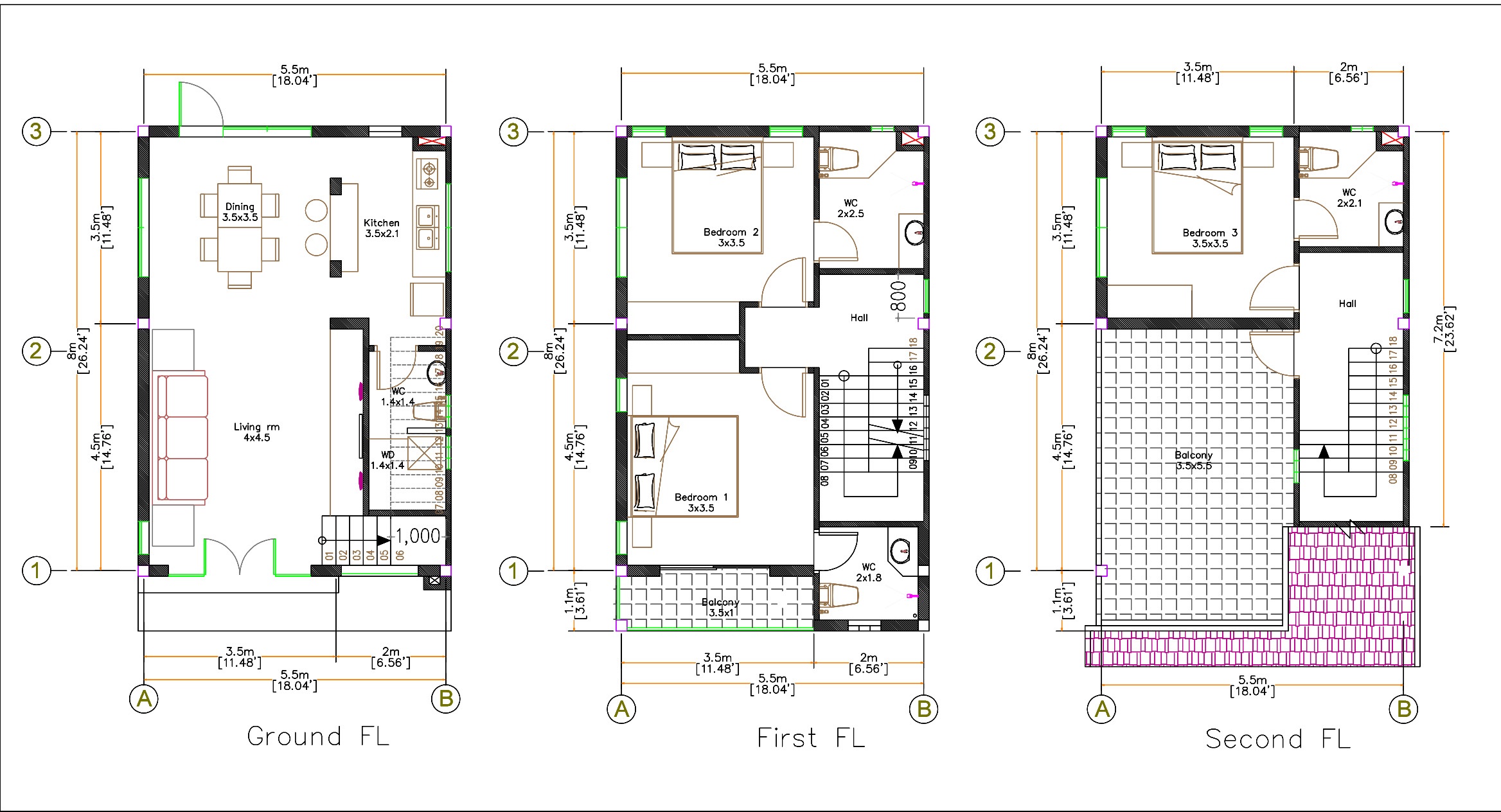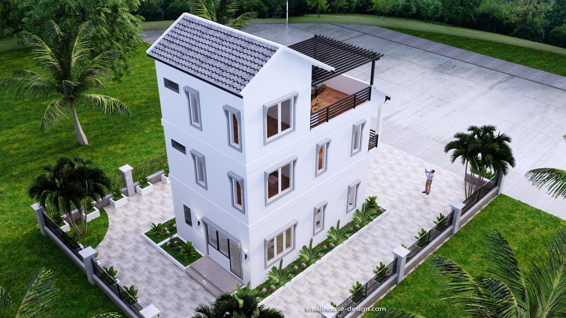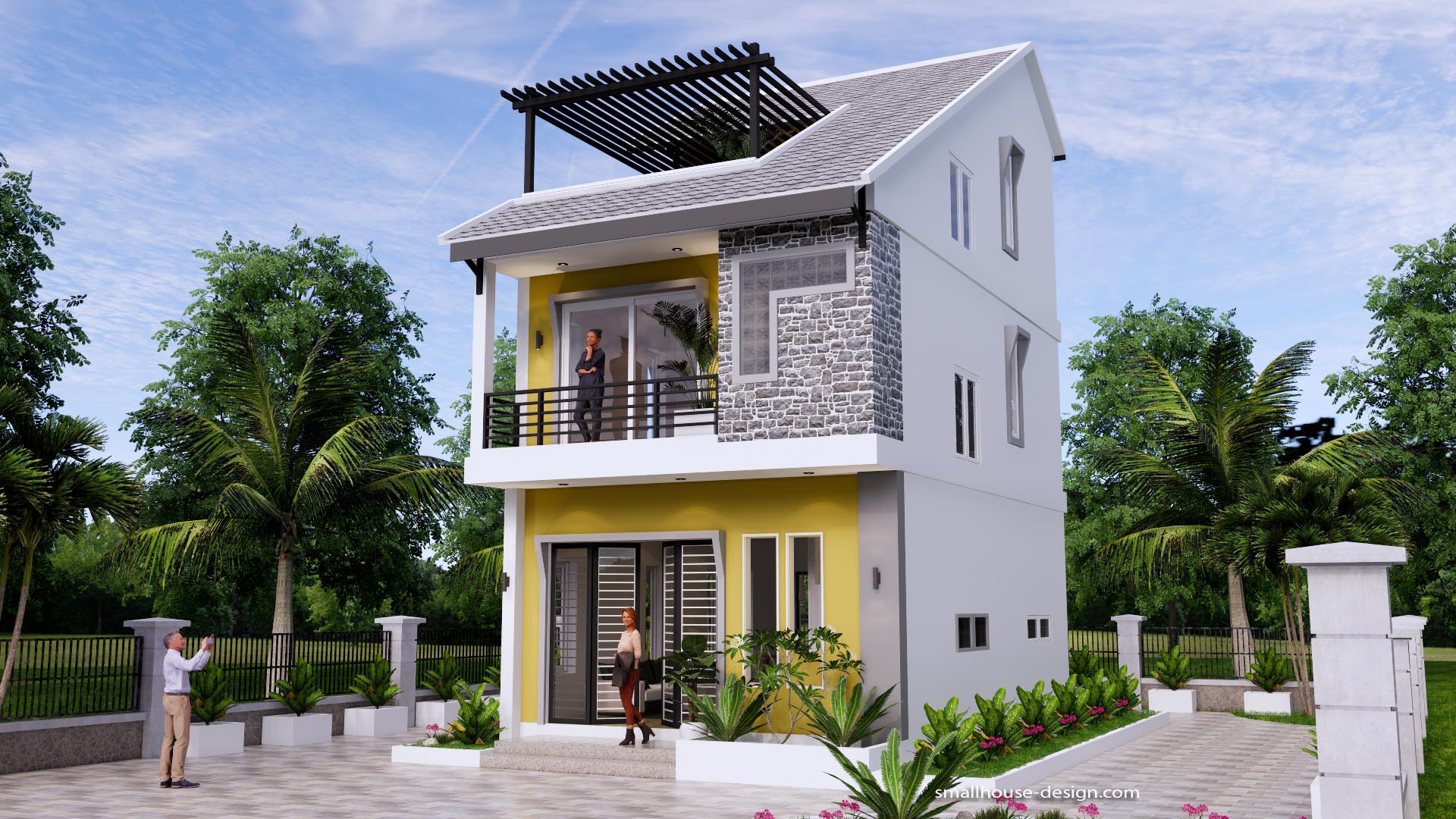 18×26 Small House Plan 3 Beds 3 Story Levels 5.5×8 Meter PDF Full Plans. This villa is modeling with 3 stories level. It’s has 3 bedrooms. Est. Price around 32-38k usd construction only, furniture not include.