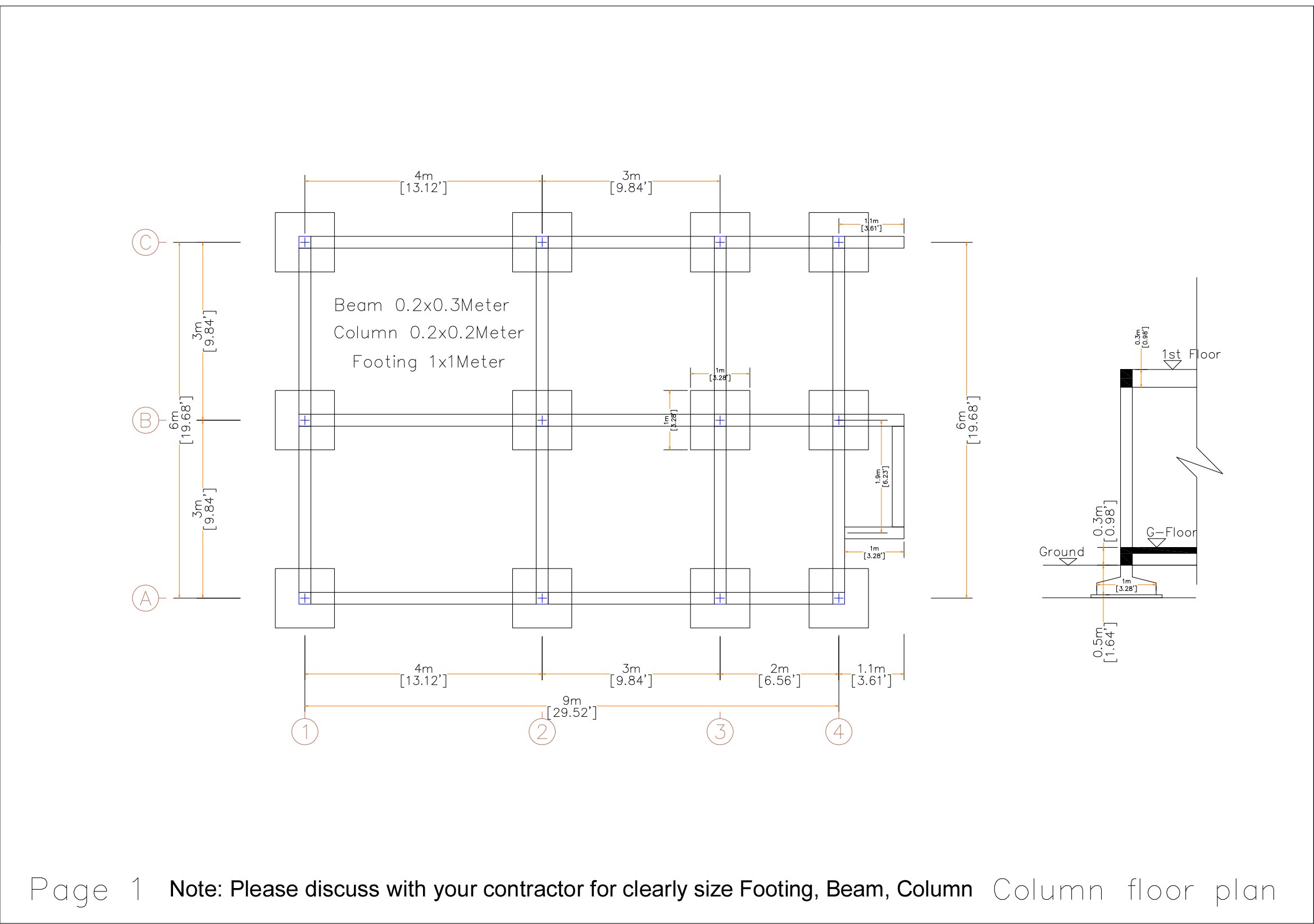 Footing, Beam, Column Location plan