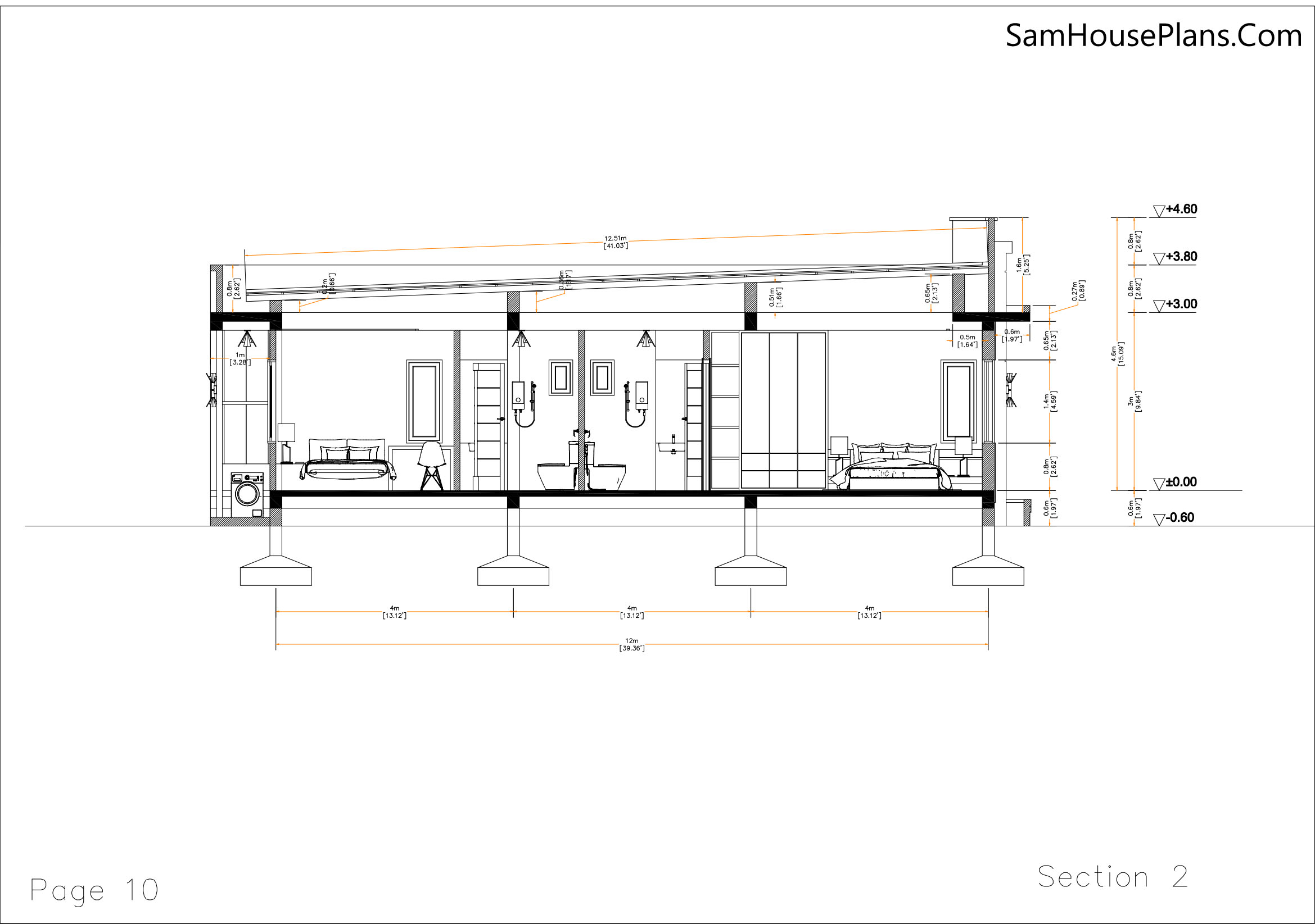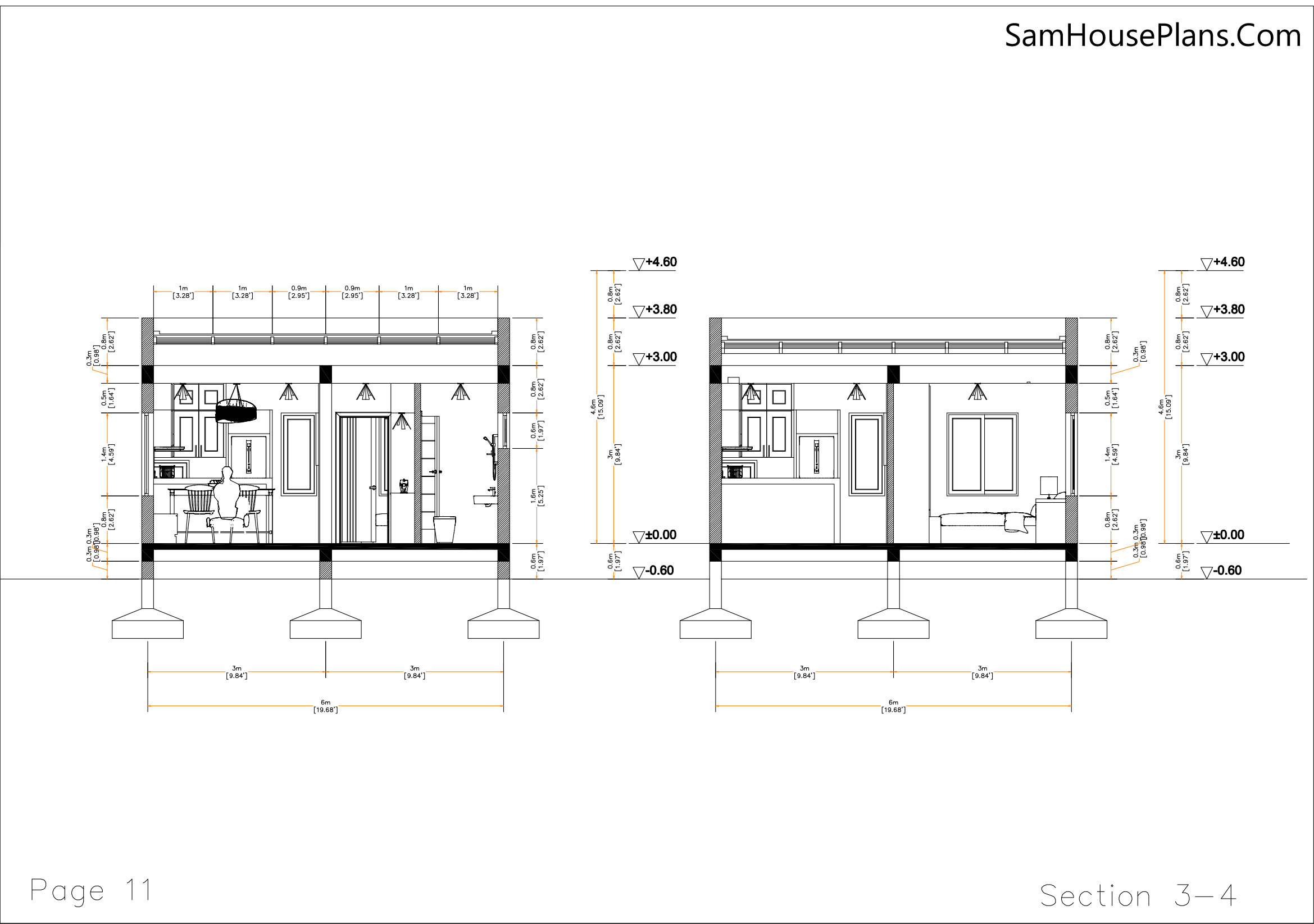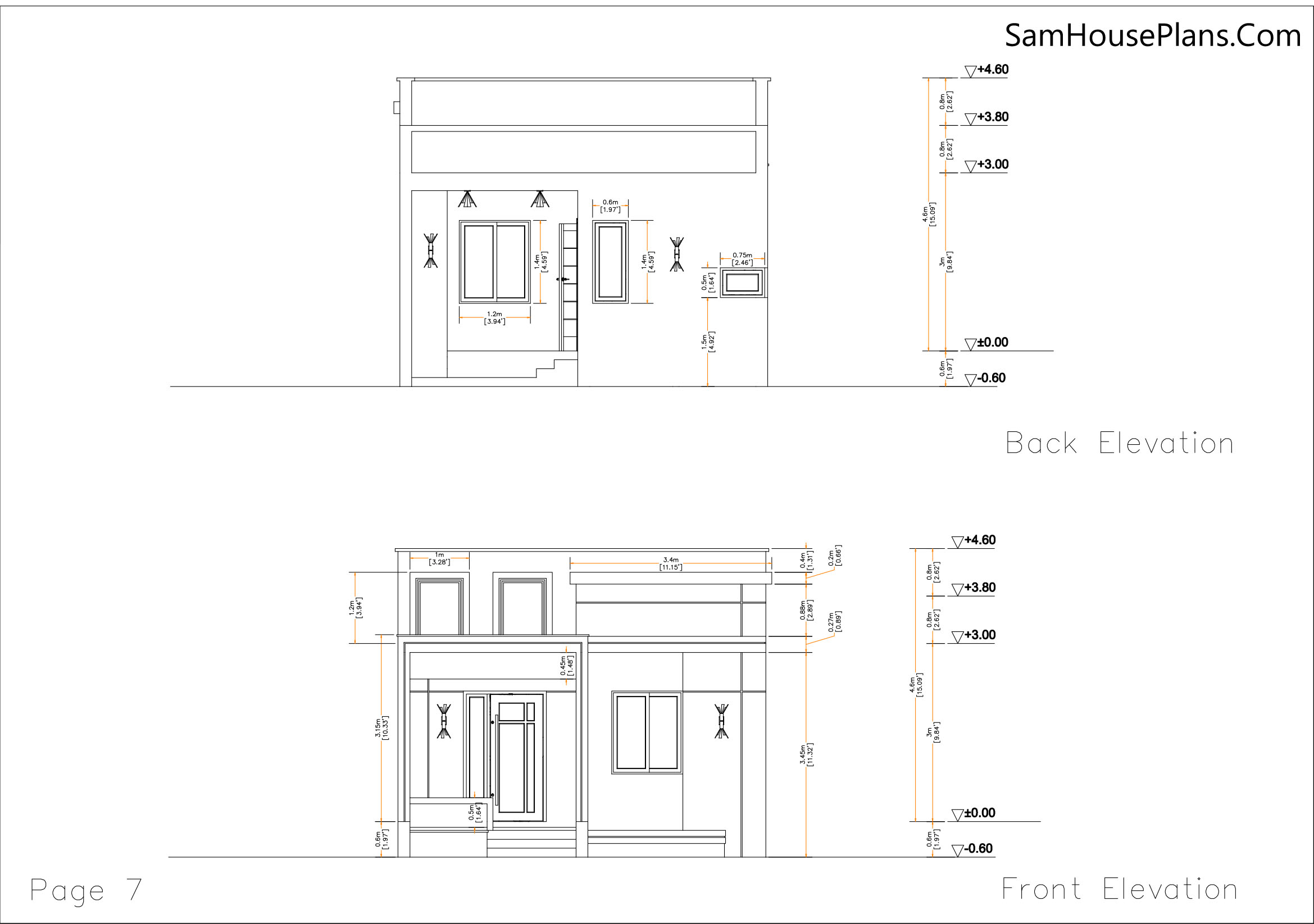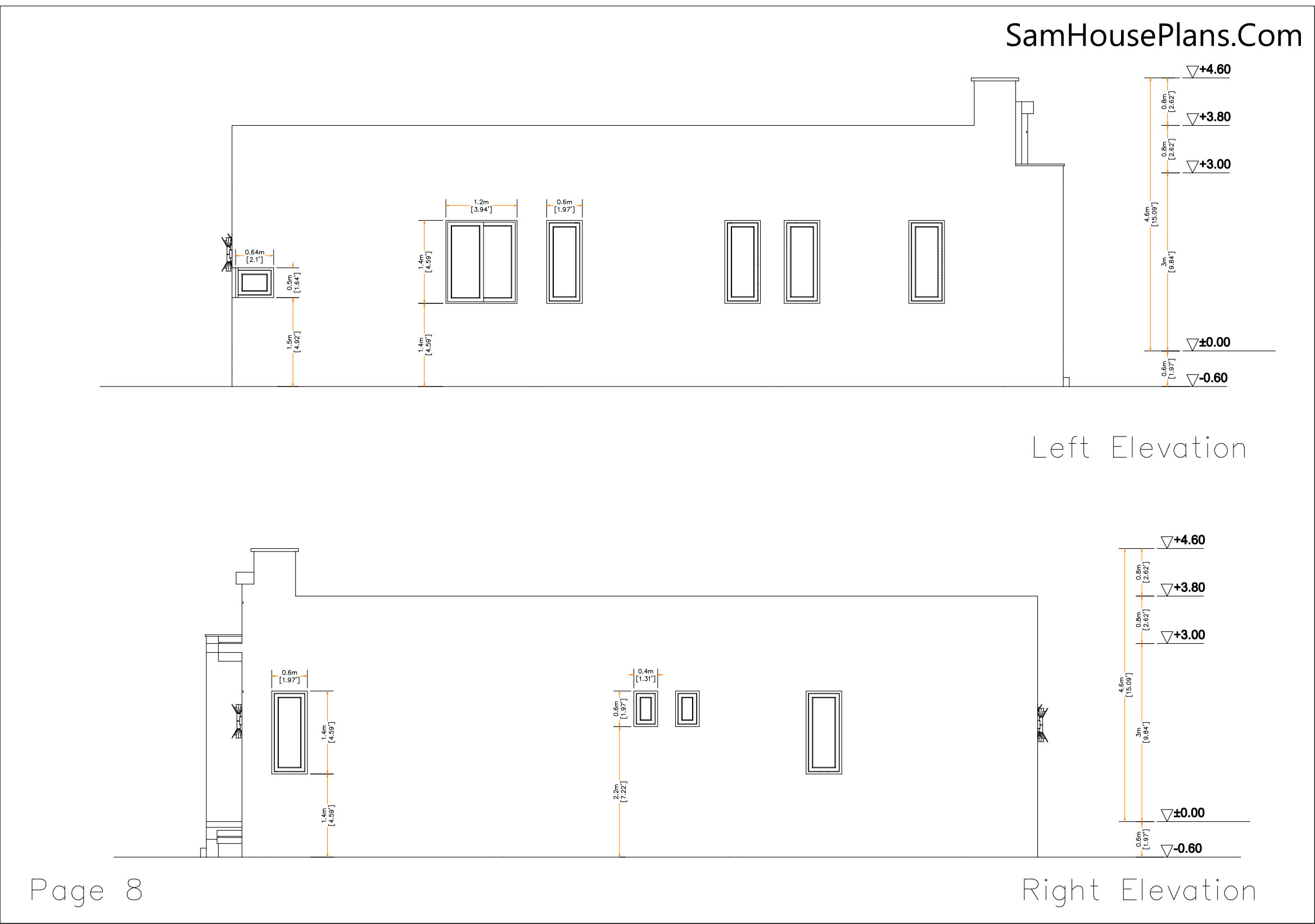 -PDF Front, Back, Left, and Right Elevation Plan with dimension. Section