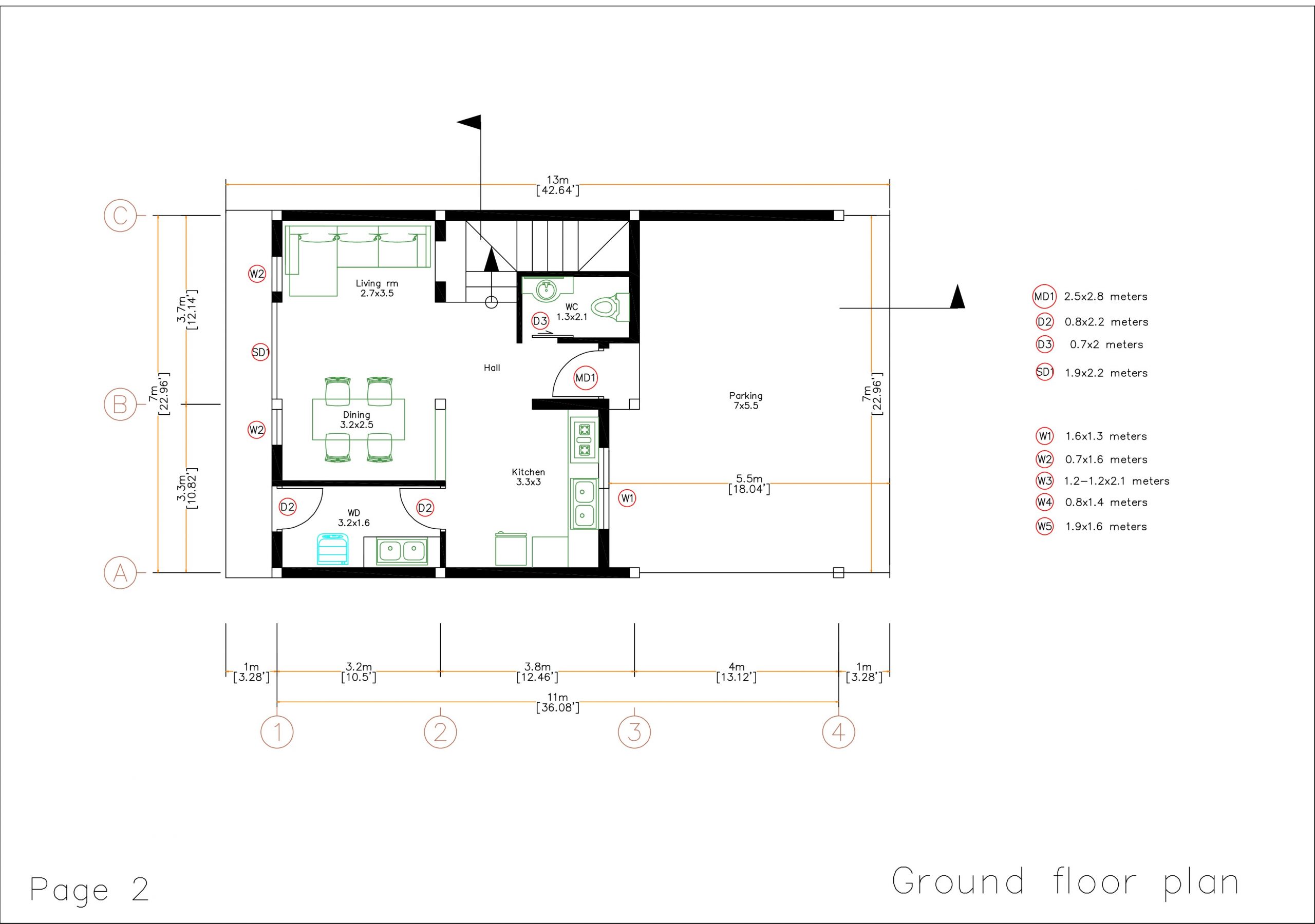 Modern House Design 7x13m with 3 Bedrooms floor plan Detail: