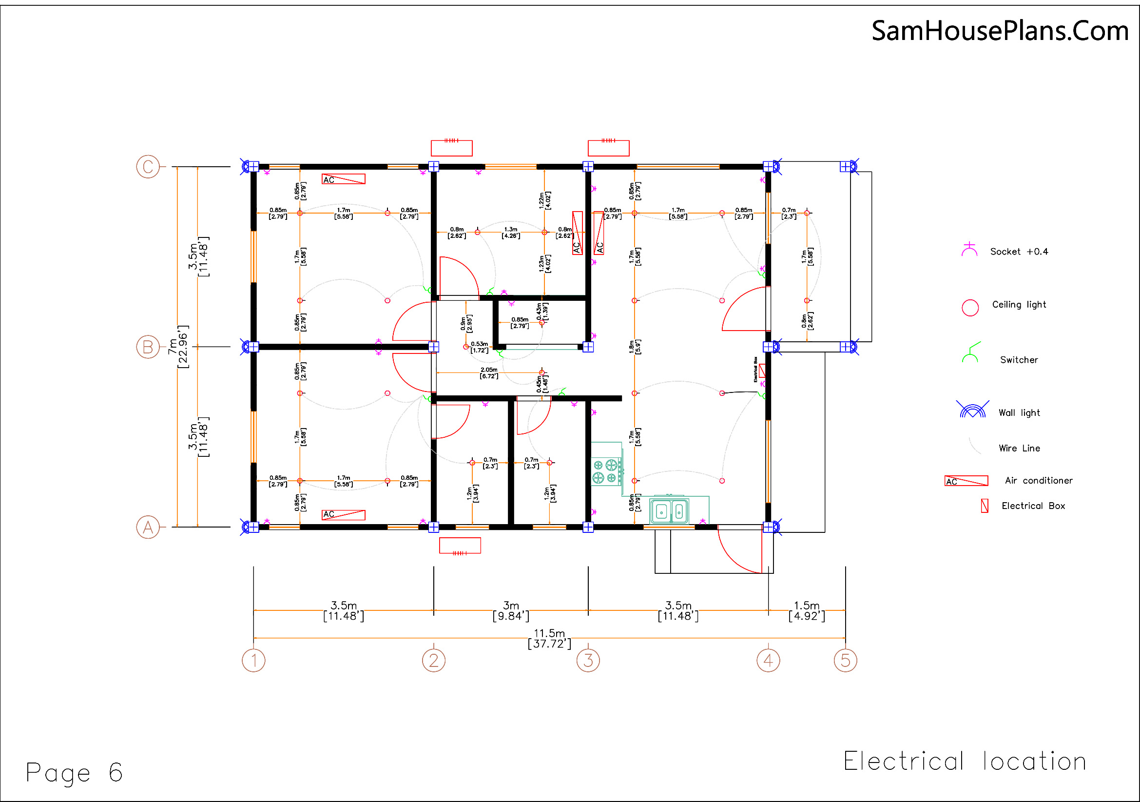 This small house plan you looking for has: Car Parking is at out side of the house. A nice Terrace entrance in front of the house 1×7 meters. When we are going from front door, a Living 3.5×3.5 meter is very perfect for this house it is nice and modern. Brightly Kitchen area 3.5×3.5 meter with dining table, it is beautiful. A multi Bathroom size 1.5×2.5 meters. The washing area 1×1.8 meters.