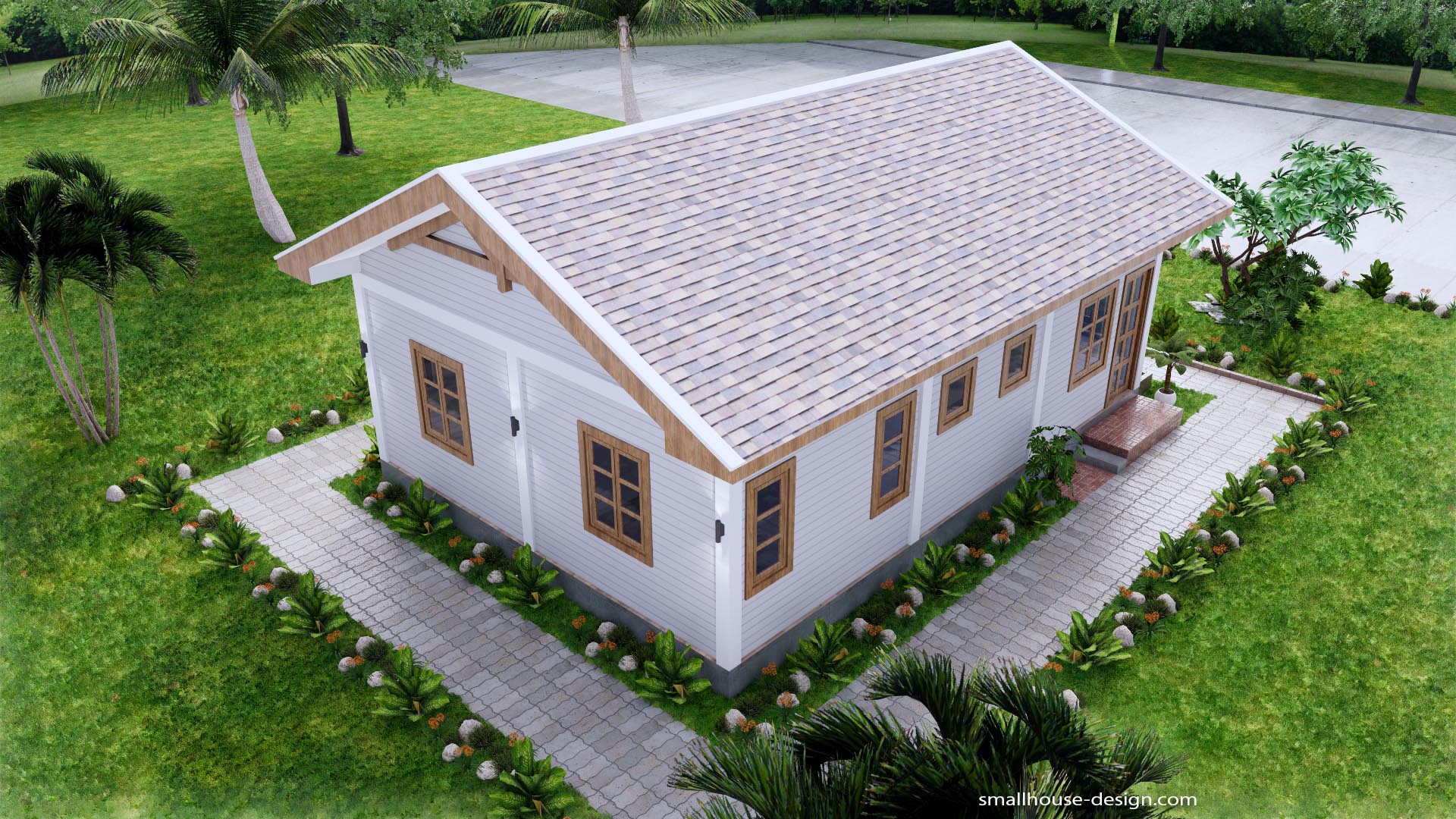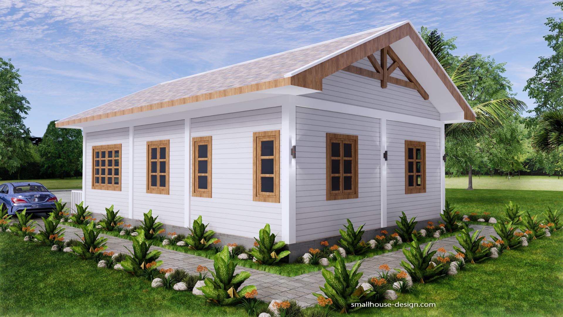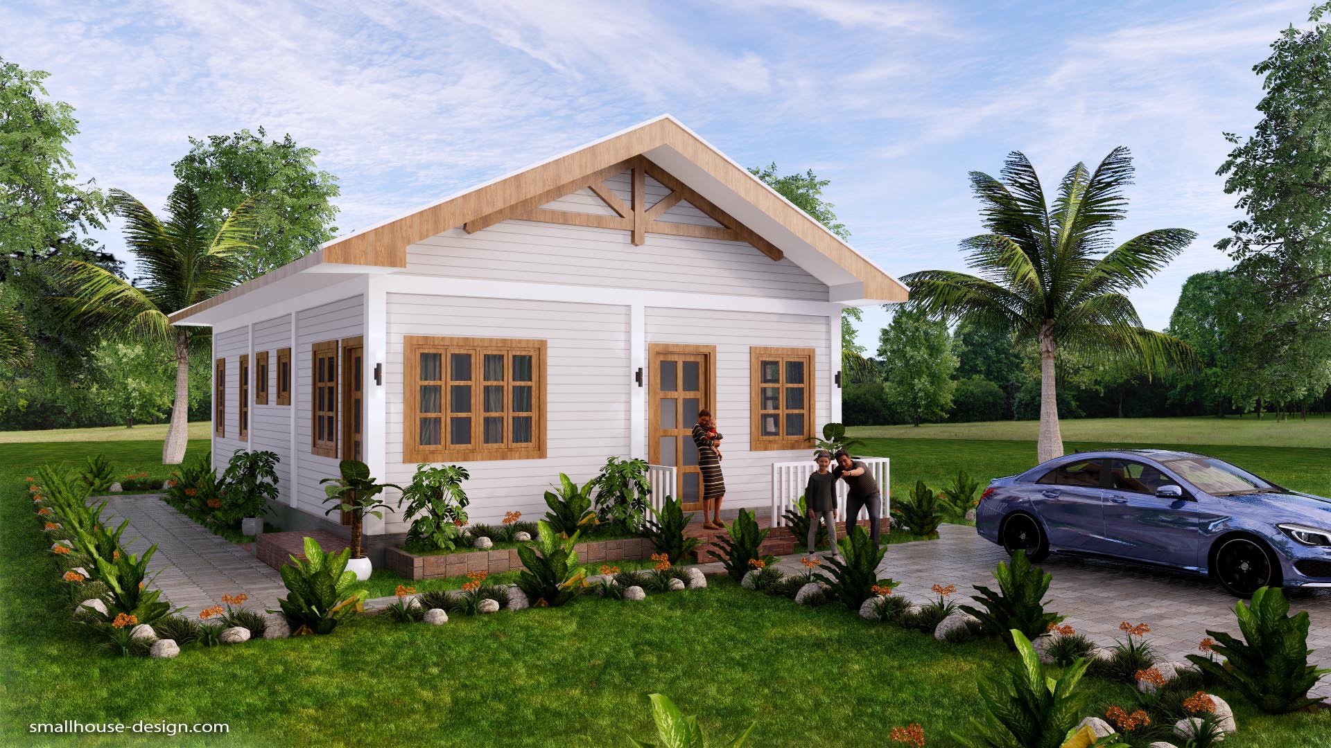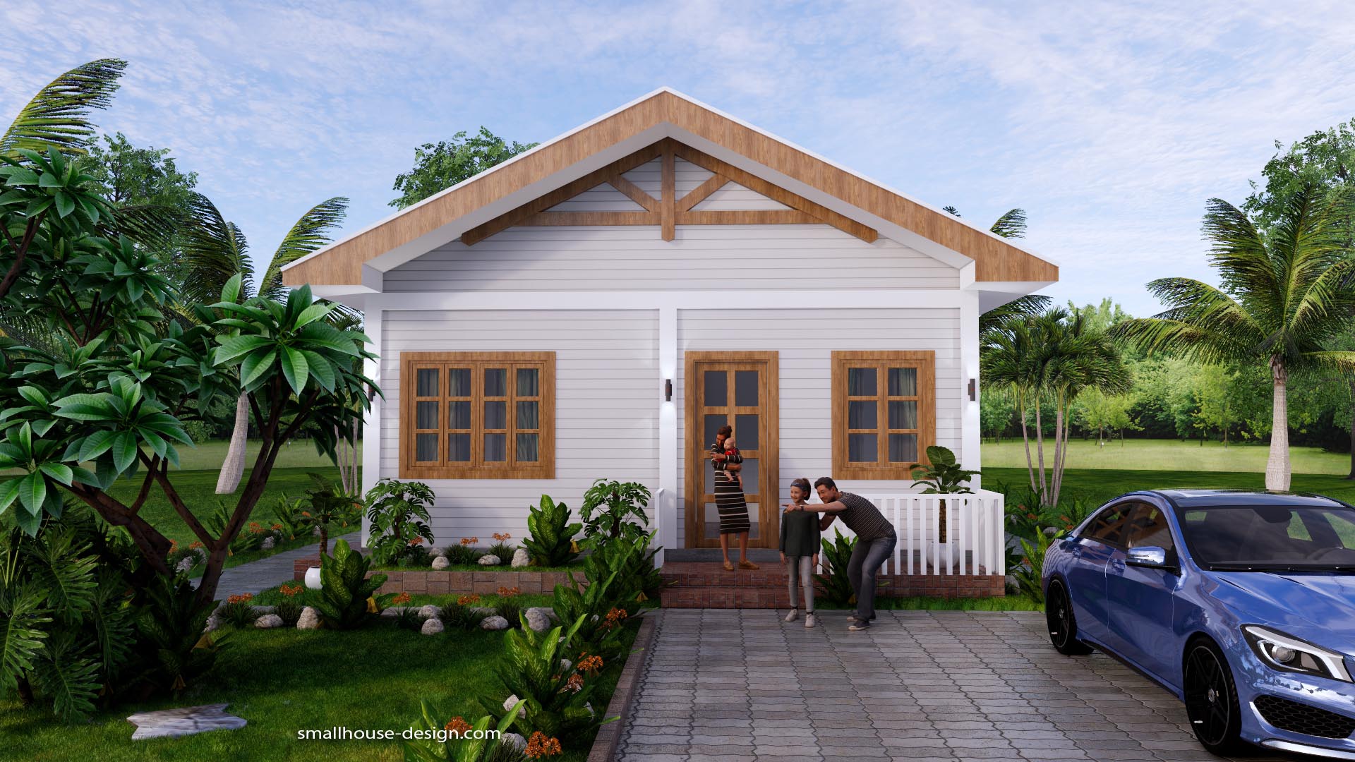Small House Design 7×10 Meter 3 Beds PDF Plan 2 Bathrooms Gable Roof. This villa is modeling by SAM-ARCHITECT With 1 stories level. It’s has 3 bedrooms. Est. Price around 18-25k usd construction only, furniture not include.