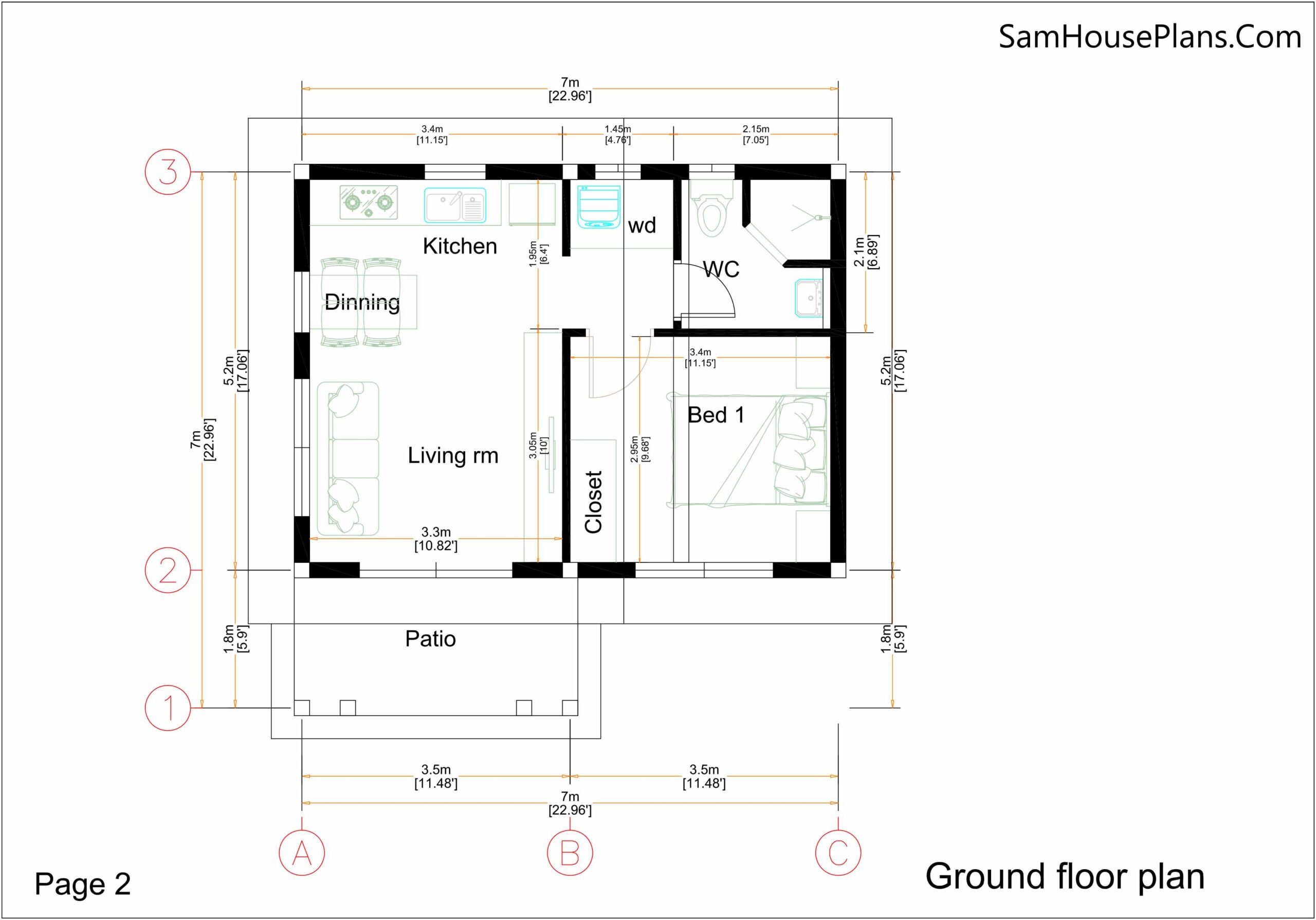 Small Plans 7×7 Meter 23×23 Feet One Bed