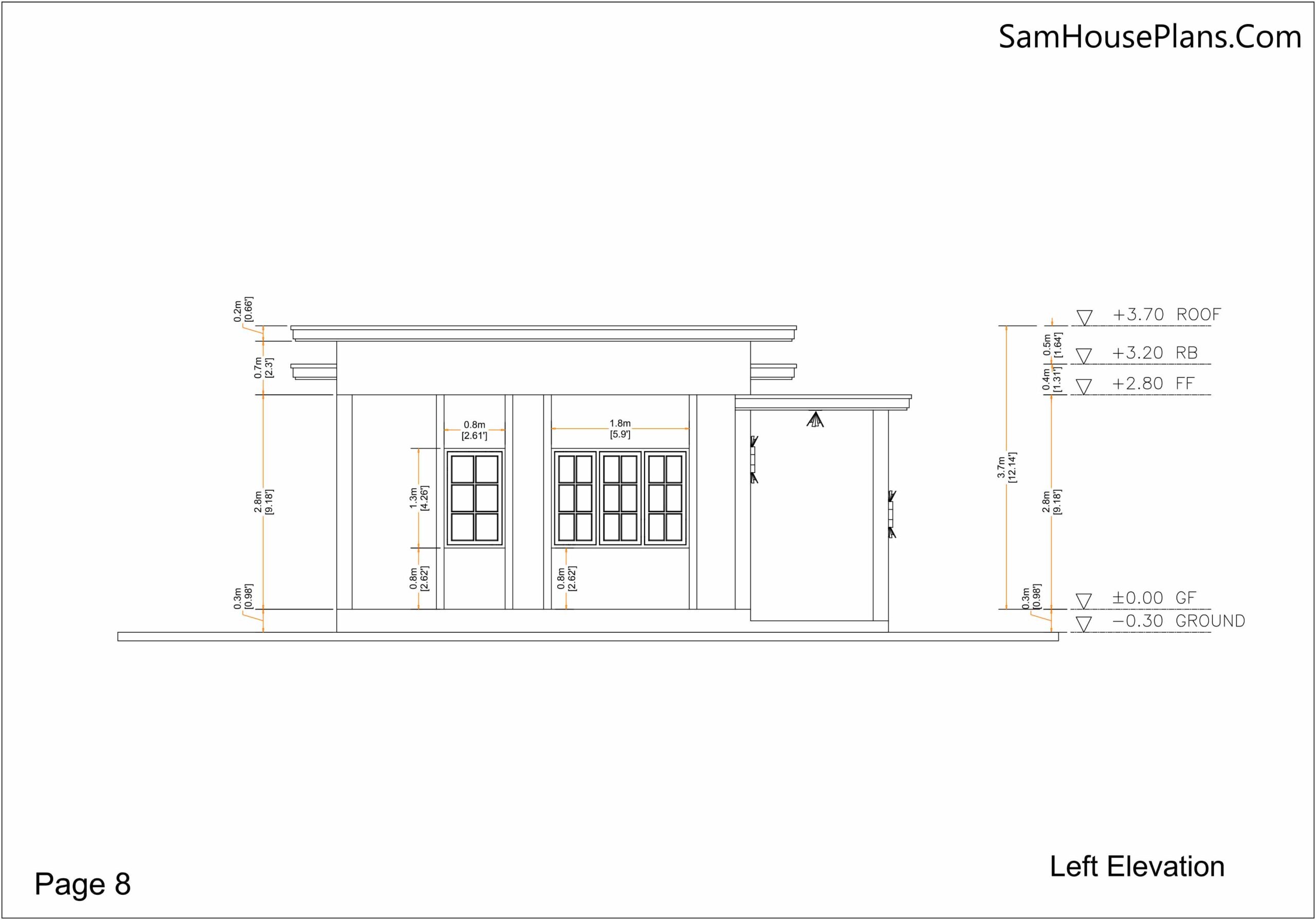 Small House Plan 7×7 with 1 Bedrooms Flat Roof 23×23 Feet, Full Plan. PDF floor plans.