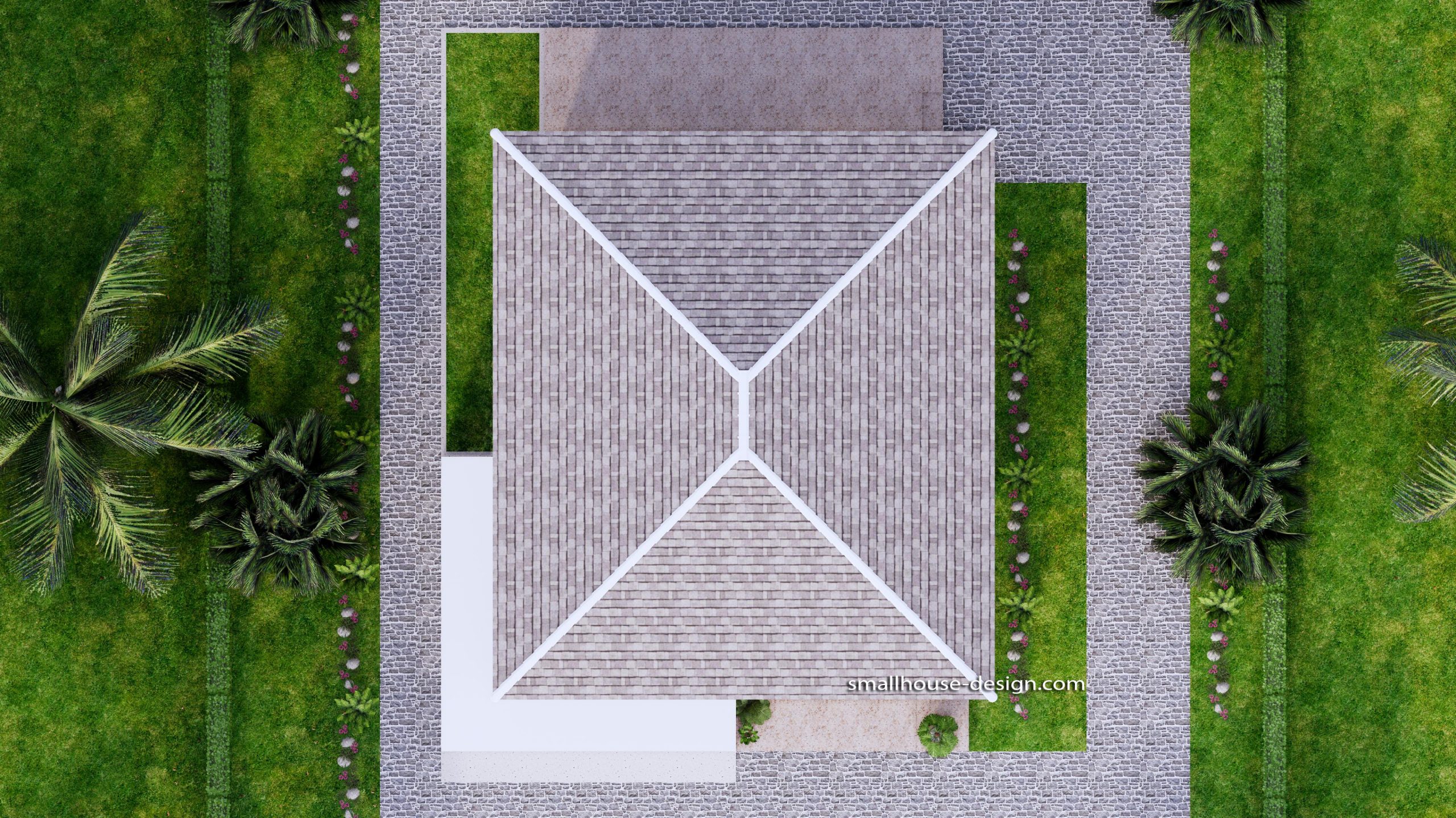 Finally, The Hip roof type is made from zine roof tiles that cover above Gypsum board ceiling . It is make the house look simple and modern.